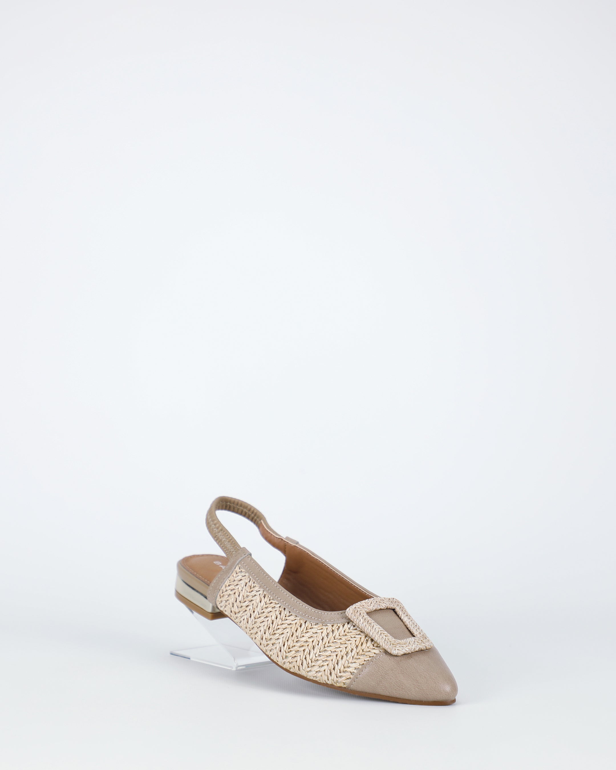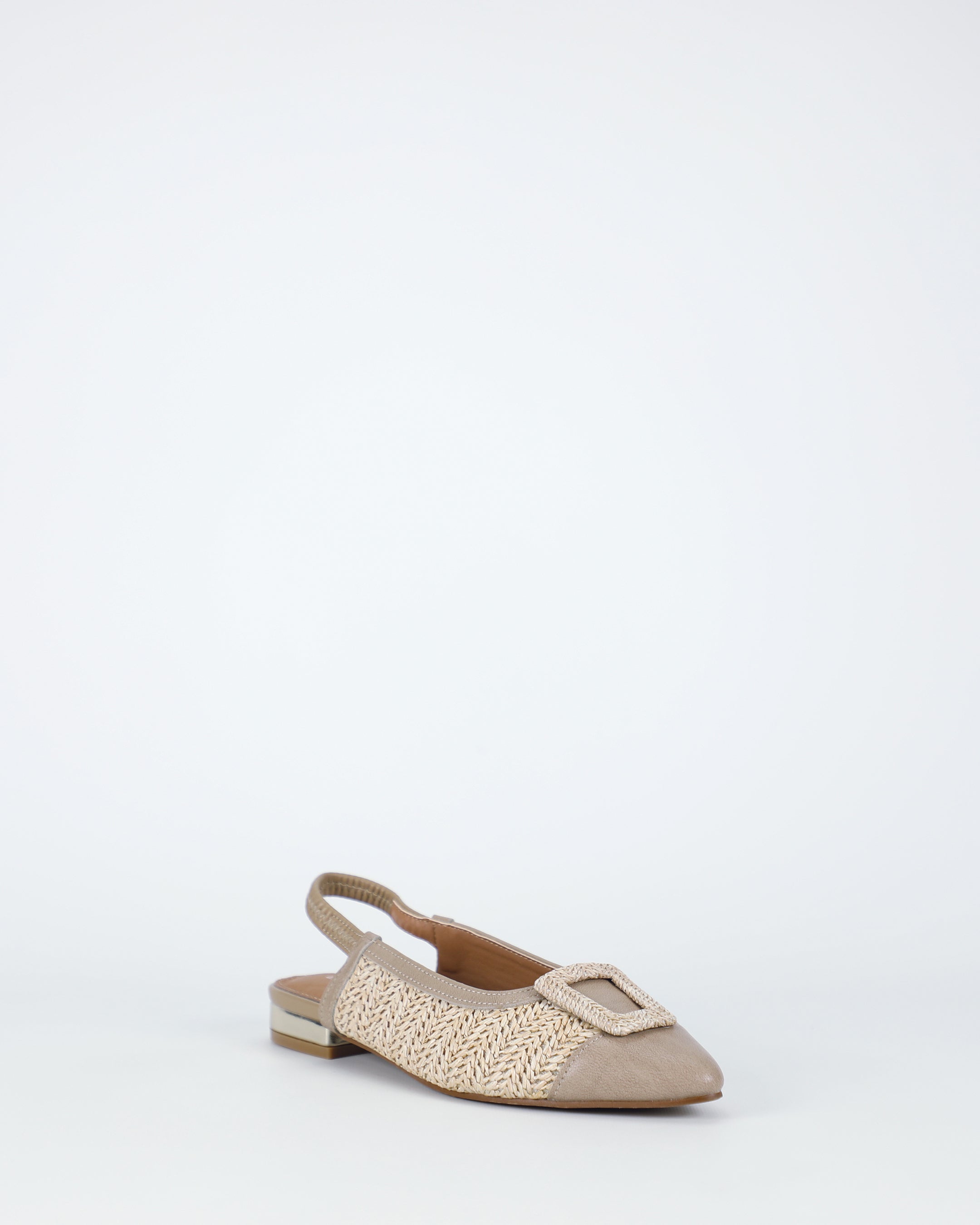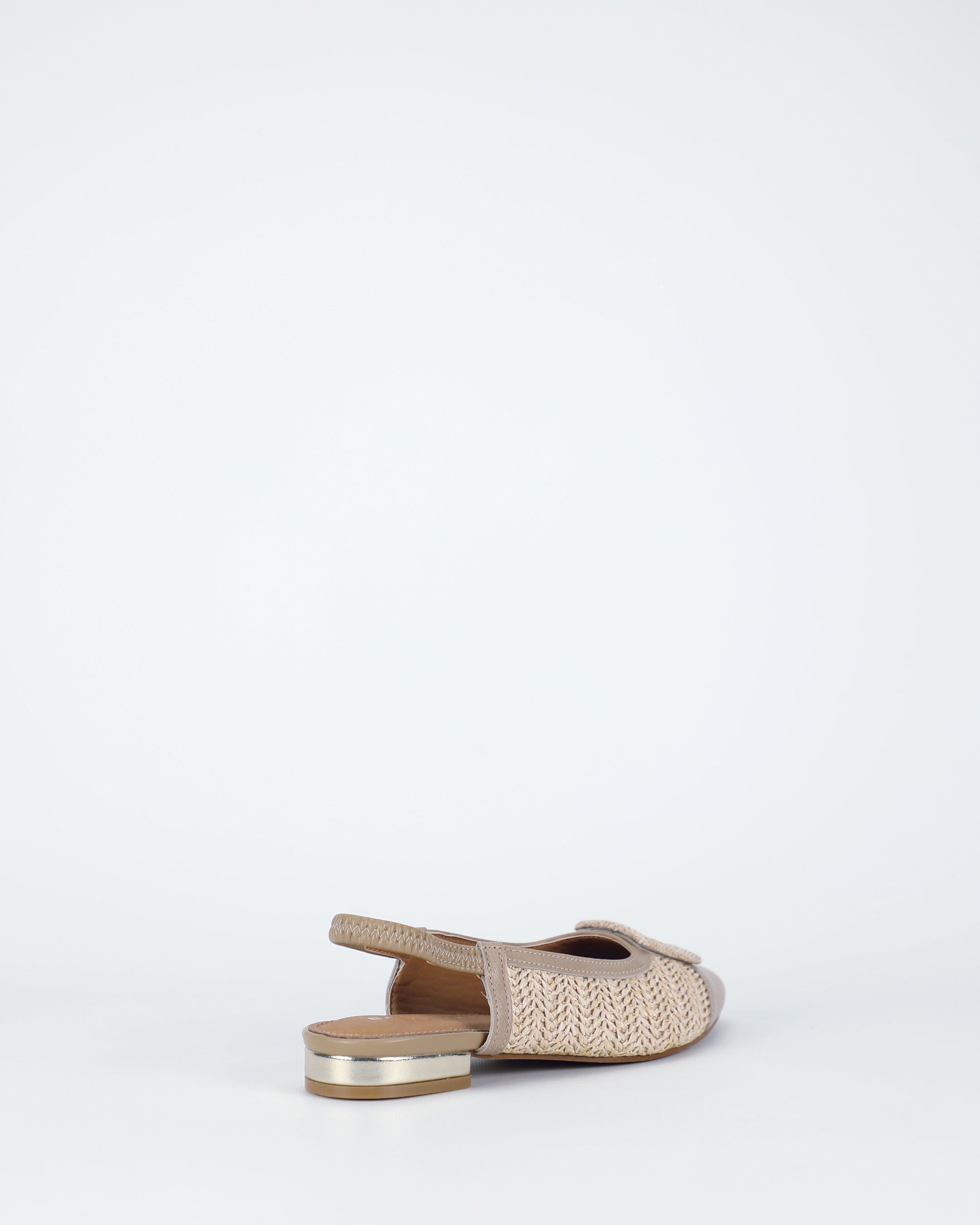 An easy elastic slingback provides a flexible, secure fit, finished in natural latte for a clean, tonal look. The style pairs naturally with straight-leg jeans, wool midi skirts, and knit dresses. Textured flats continue to feature strongly in modern, layered wardrobes.