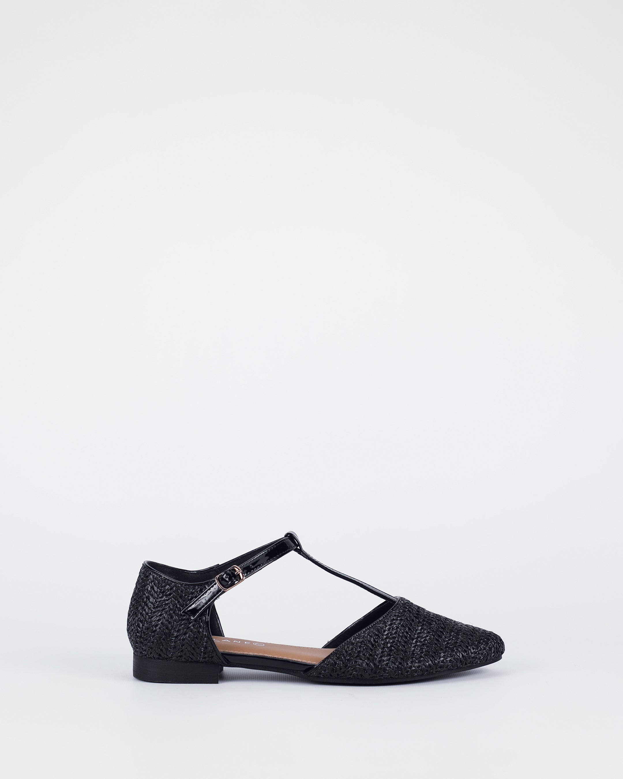 Embrace timeless summer style with Allira in black raffia. The pointed toe and elegant T-bar strap bring a touch of sophistication, while the woven raffia texture captures the season’s love of artisanal details. Lightweight and chic, it’s a versatile flat that works from day to evening.