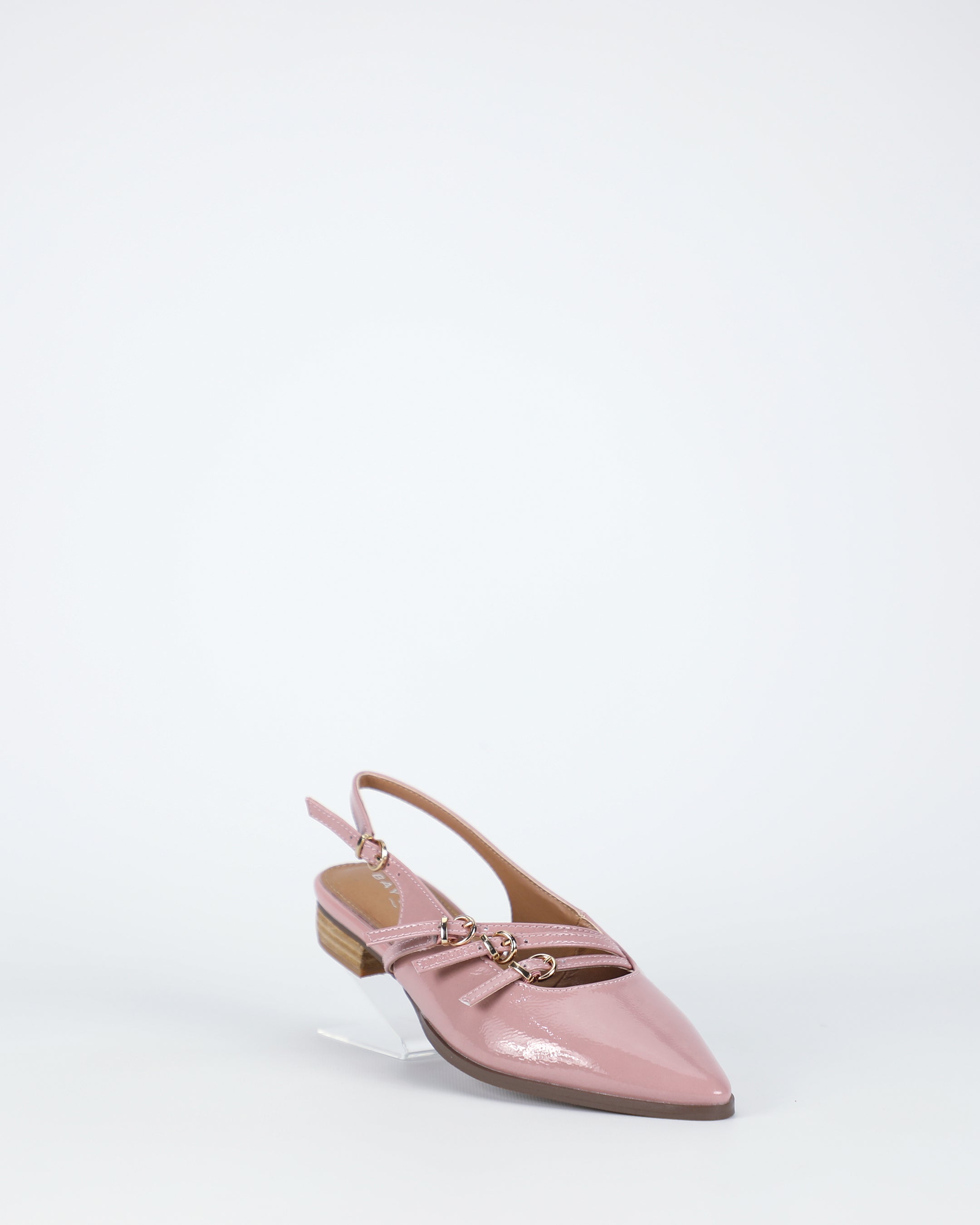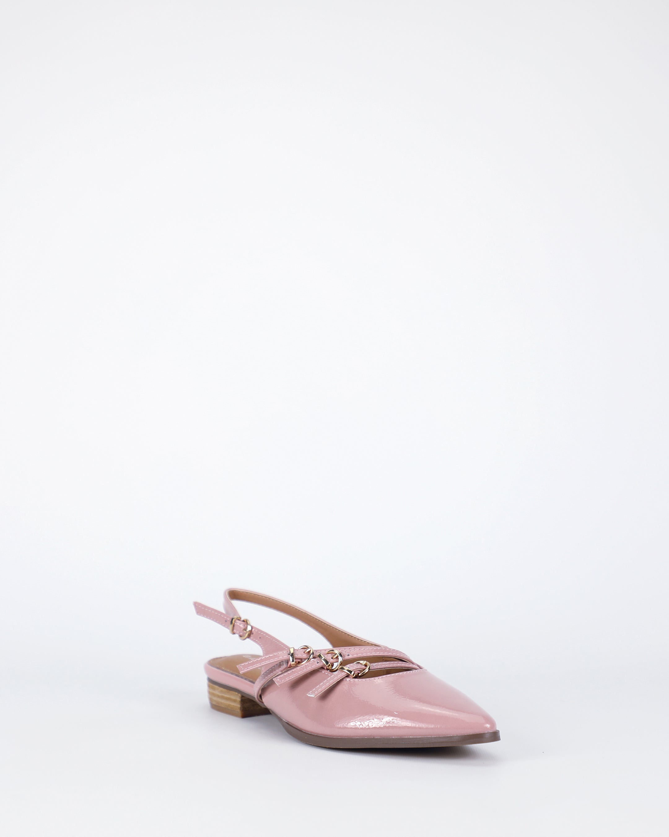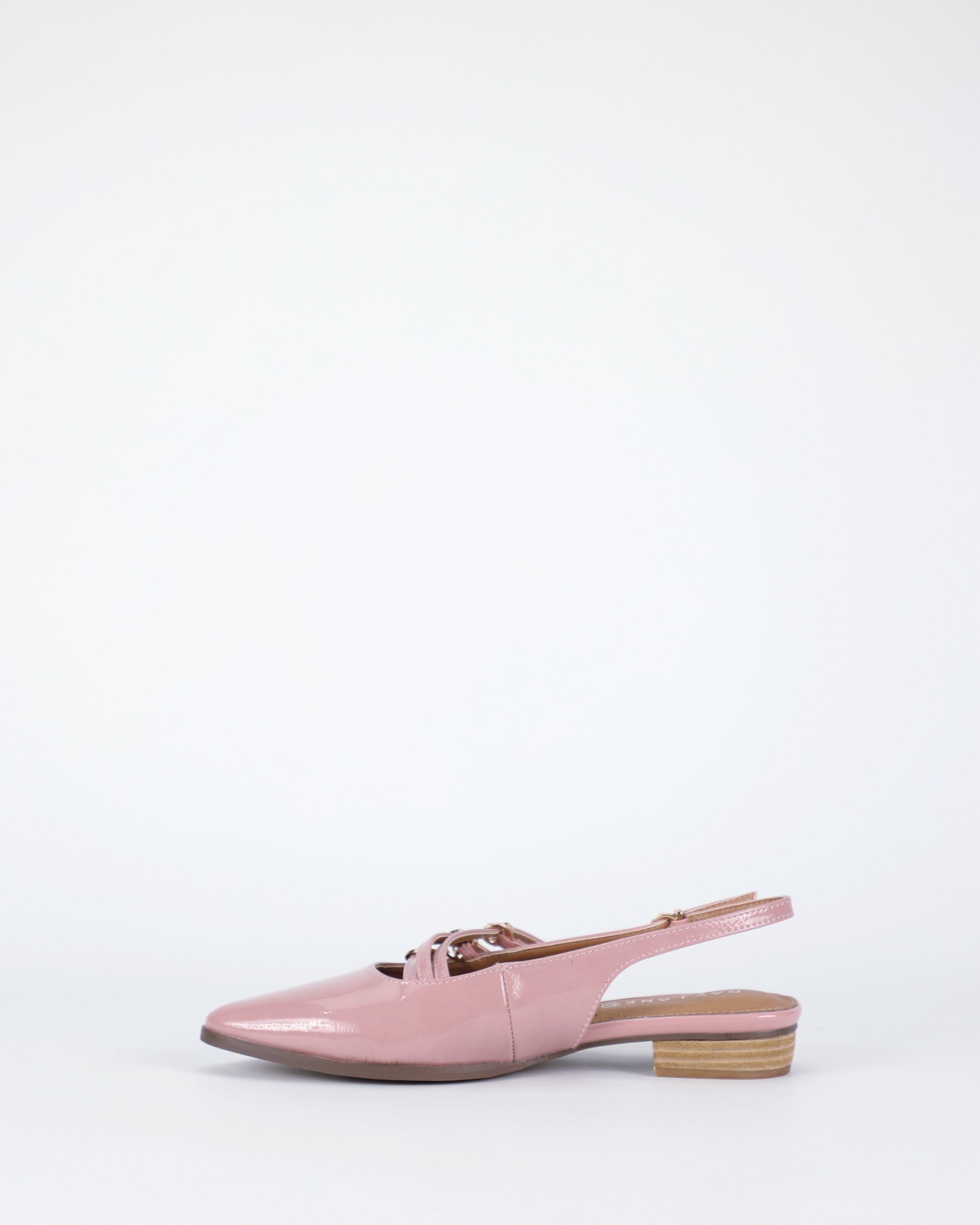 A modern flat that balances classic shape with everyday ease, Baker is designed to slot seamlessly into a well-edited wardrobe. The patent leather in pink adds texture and depth, while the pointed toe and subtle hardware detail keep the look sharp, current, and easy to wear all day.