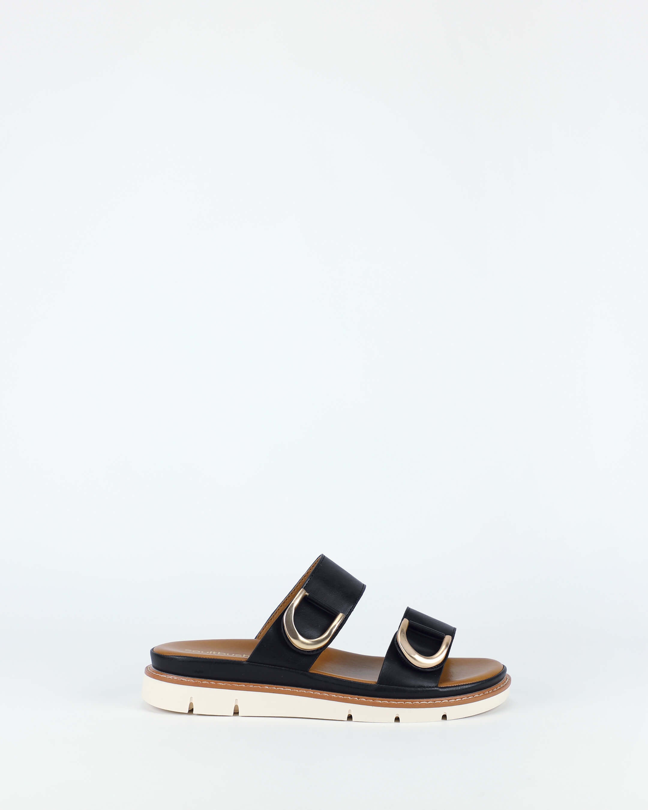 Effortlessly chic and perfect for warm-weather days, the Bonnie sandals in black combine style and comfort in one. Designed with a cushioned footbed, lightweight sole and striking gold-tone buckles, they are an ideal choice for relaxed coastal living and everyday wear.