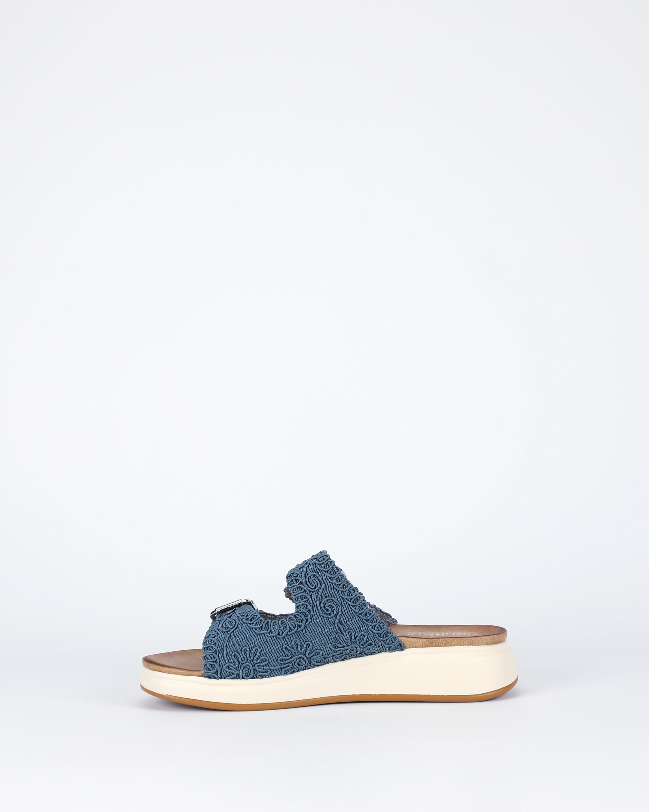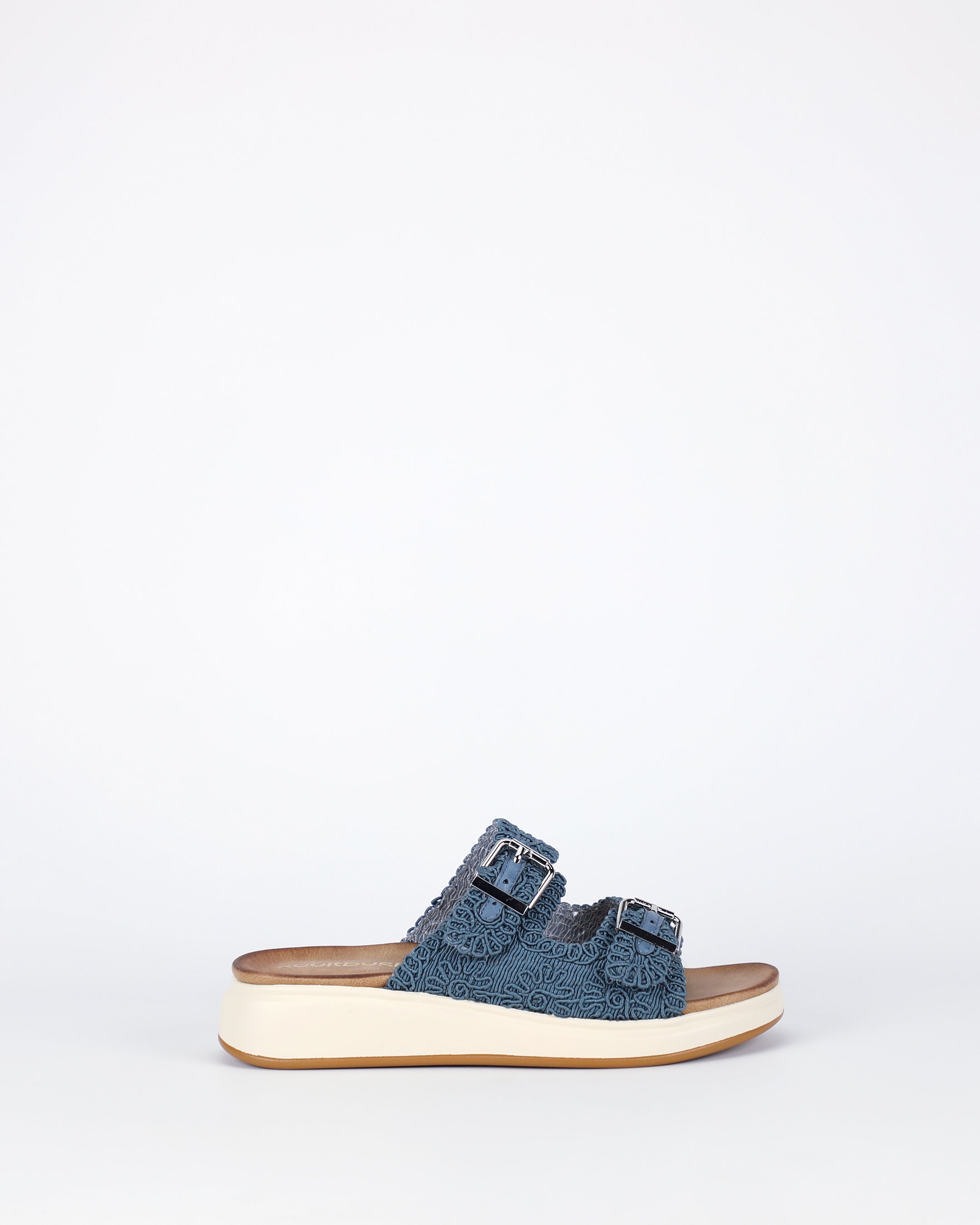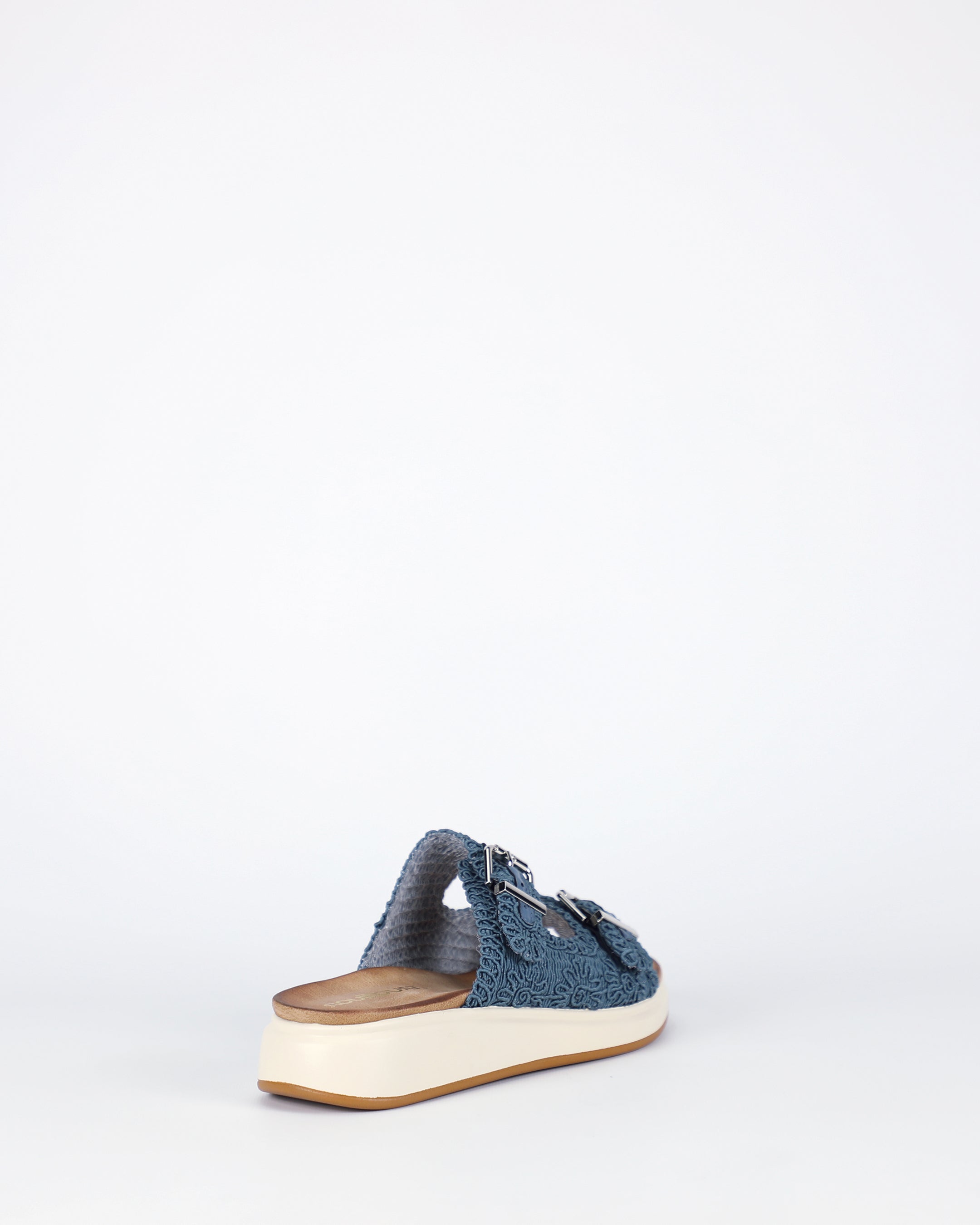 Bring effortless comfort and texture to your everyday style with the Brizzie sandals in blue. Designed with a cushioned footbed and lightweight sole, these sandals feature intricate lace-like detailing and adjustable buckle straps for a touch of laid-back elegance.
