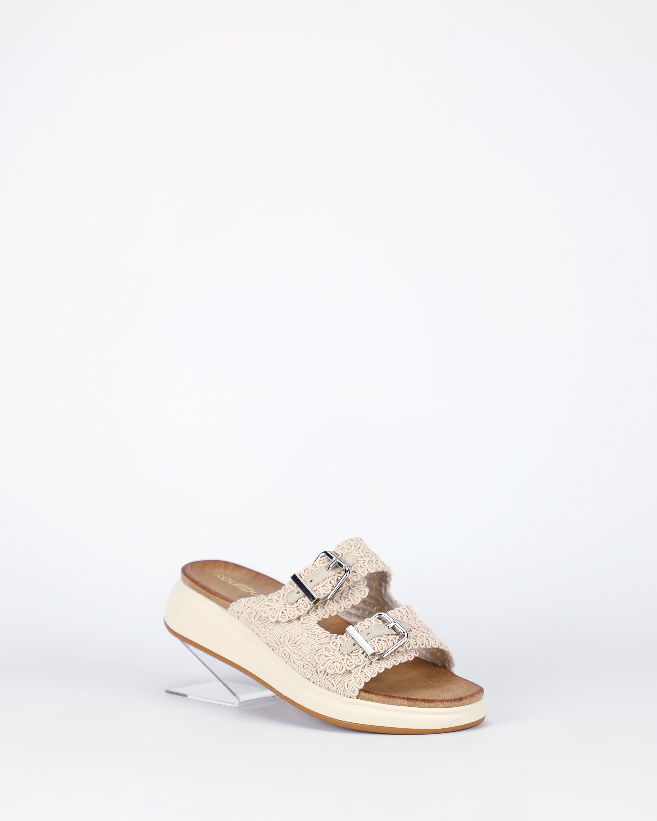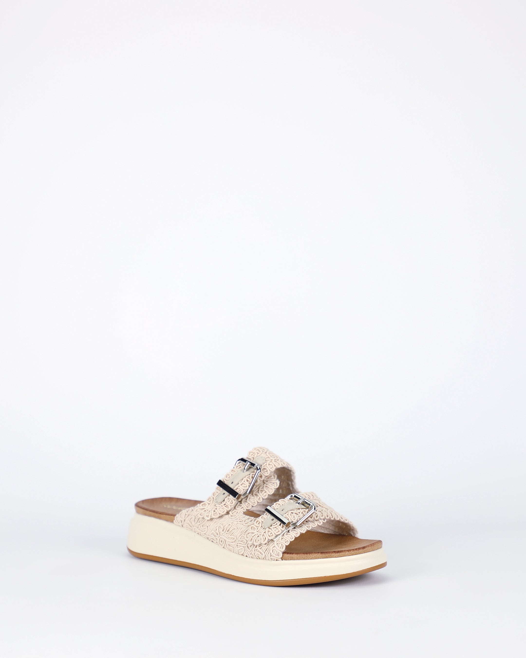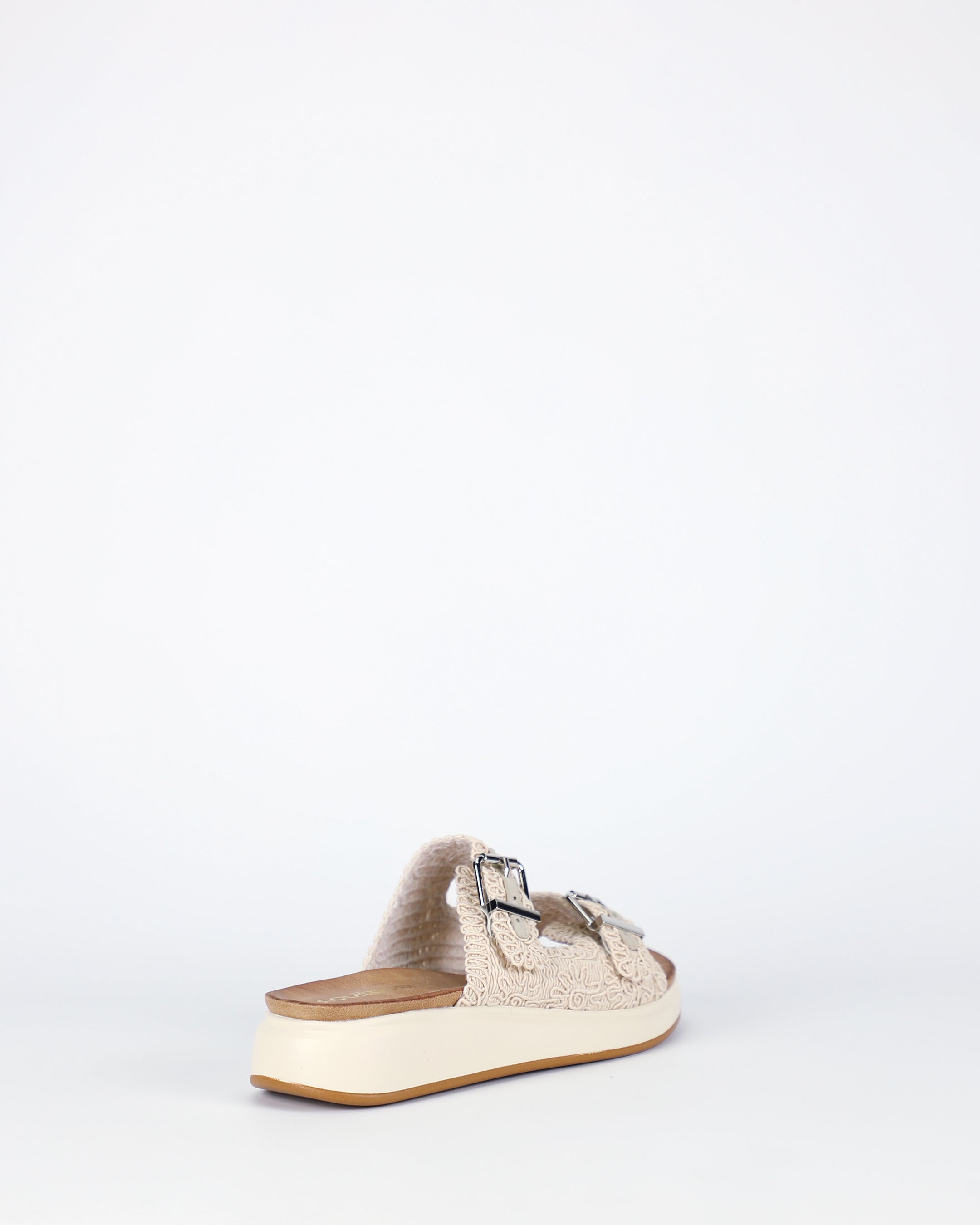 Bring effortless comfort and texture to your everyday style with the Brizzie sandals in natural. Designed with a cushioned footbed and lightweight sole, these sandals feature intricate lace-like detailing and adjustable buckle straps for a touch of laid-back elegance.