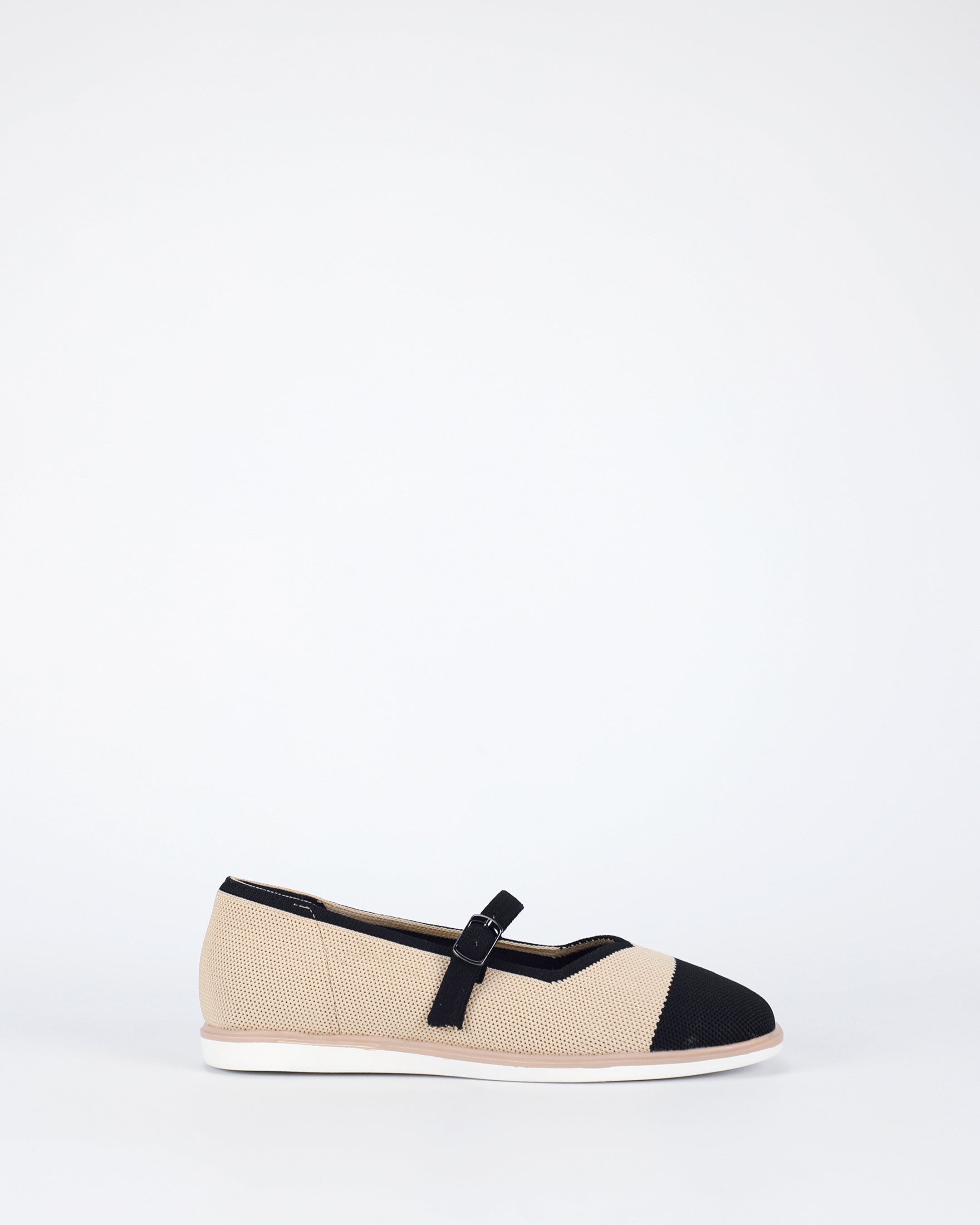 A statement flat that blends classic shape with confident detail, Flavour is designed for all-day comfort without sacrificing style. The black natural upper adds contrast and texture, paired with a Mary Jane strap and cushioned feel.