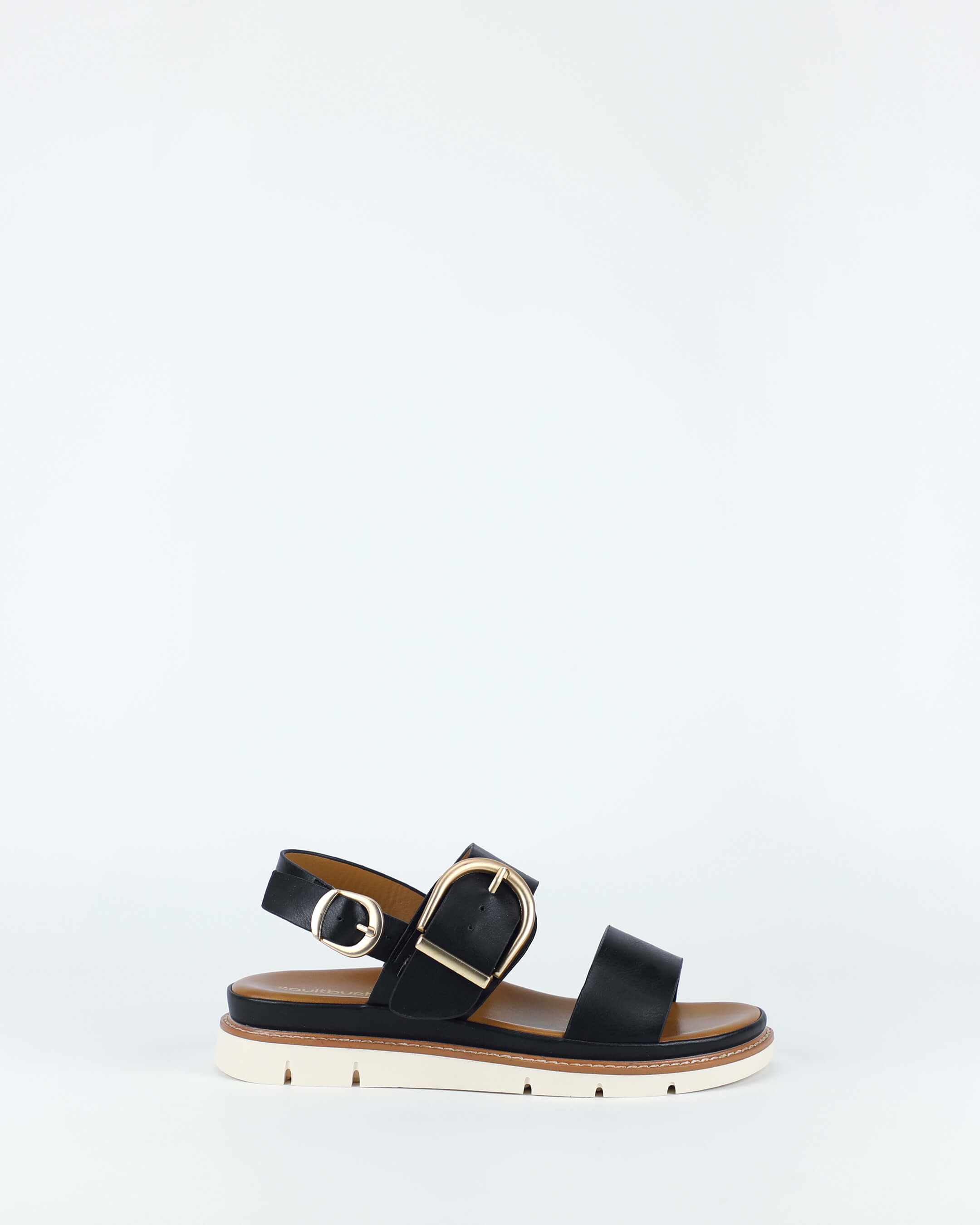 Chic and versatile, the Garie sandals in black bring together timeless style and everyday comfort. Featuring a cushioned footbed, lightweight sole, and statement gold-tone buckle, they are ideal for relaxed coastal living and all-day wear.