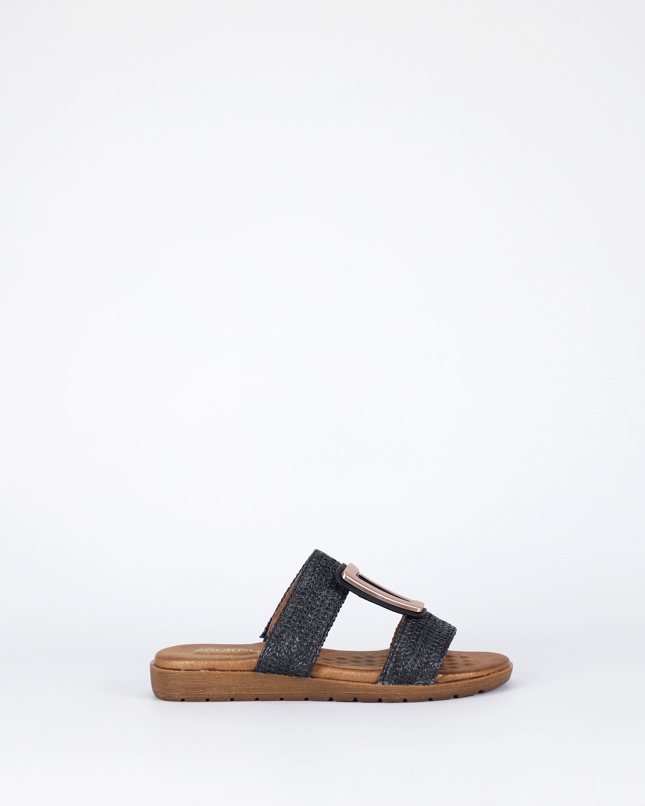 Bring effortless comfort and polish to your look with the Kimberley sandals in black. Featuring a cushioned footbed, smooth straps, and a lightweight sole, these slip-on sandals are perfect for all-day wear with a touch of modern polish.