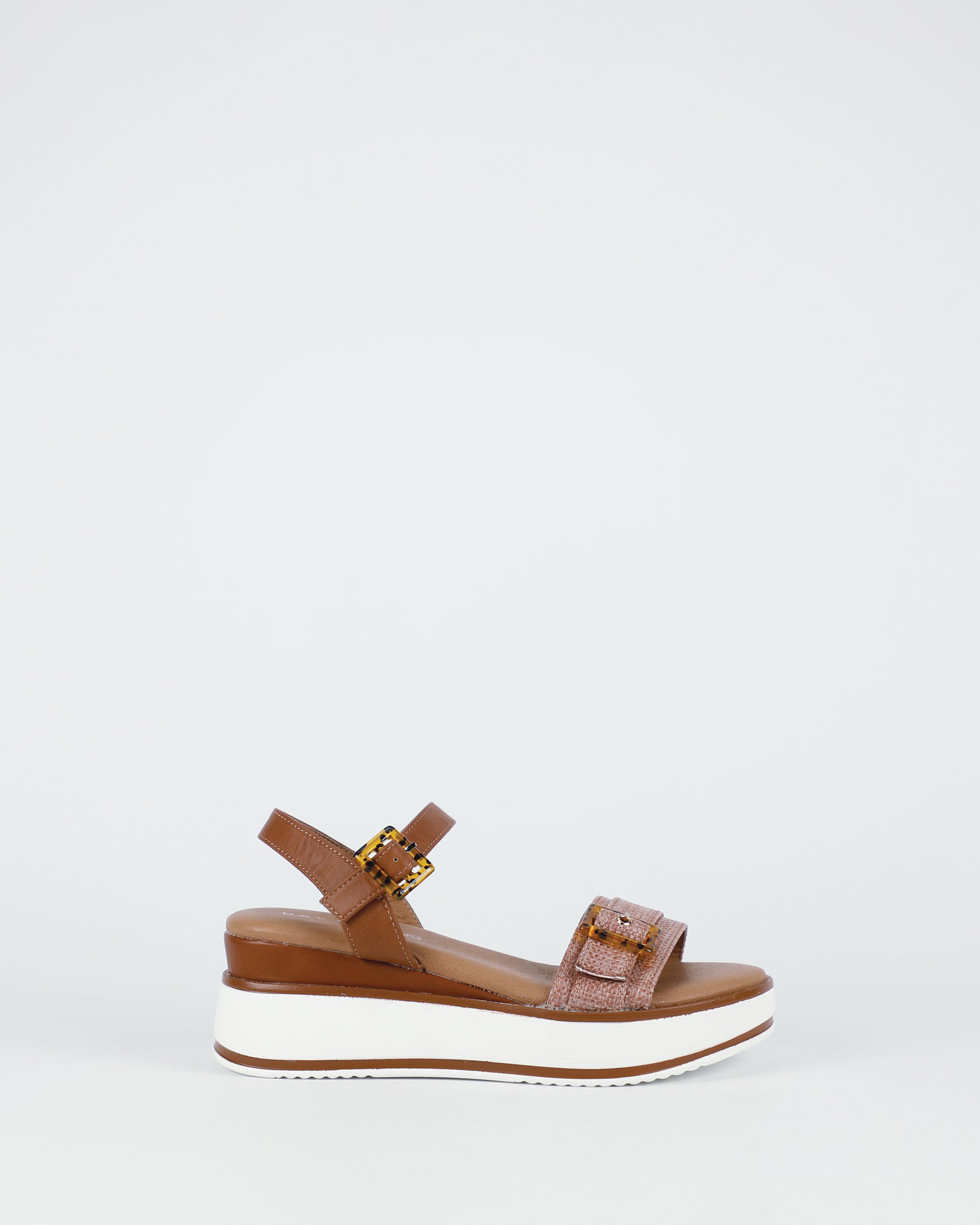 Freshen up your summer style with Livinia in tan. Featuring raffia-inspired straps, statement tortoiseshell buckles and a lightweight flatform sole, it combines trend-led detailing with lasting comfort. The cushioned footbed makes it perfect for all-day wear, while the pale hue brings a versatile edge to warm-weather outfits.