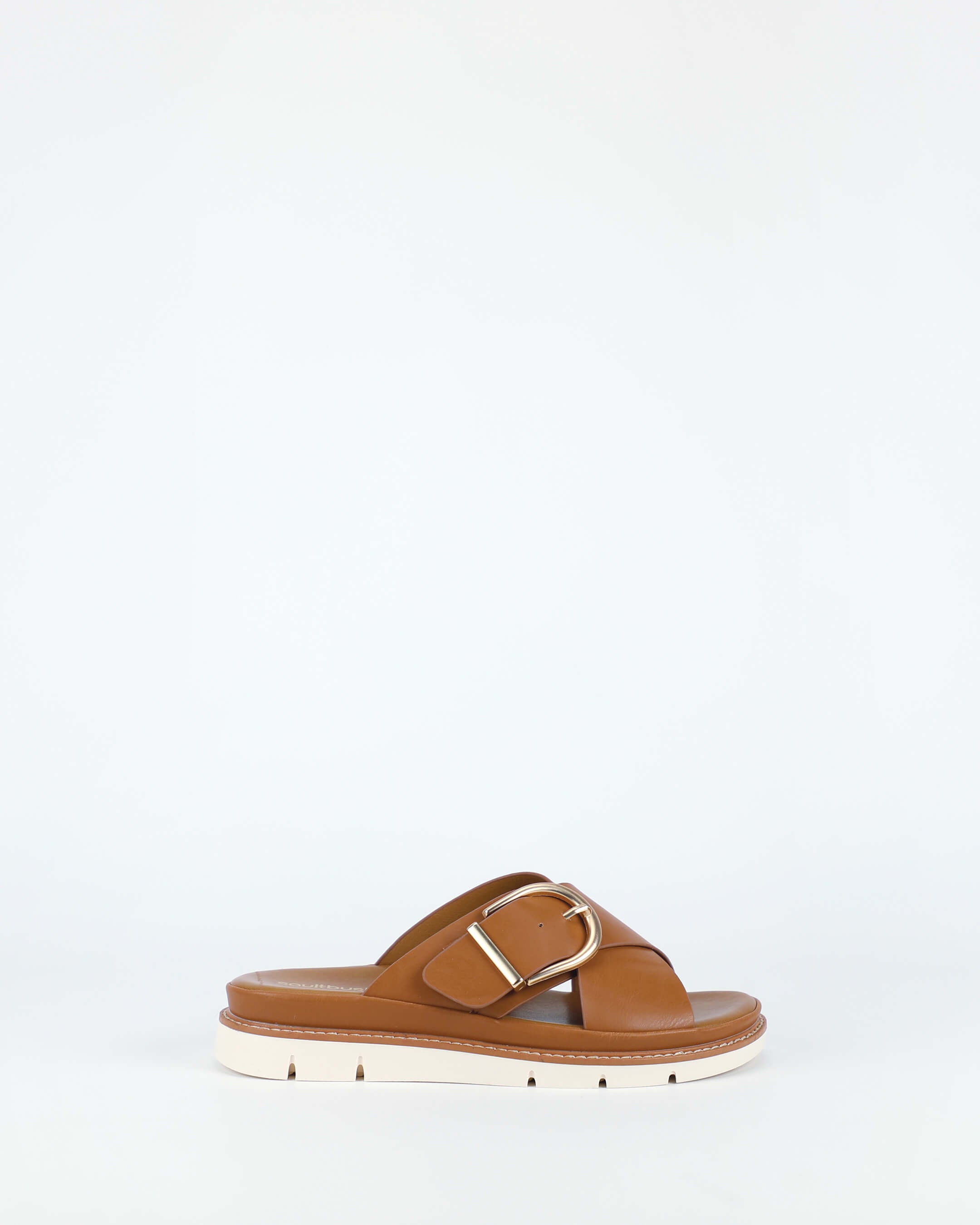 Add a touch of understated elegance to your wardrobe with the Marley sandals in tan. Featuring a super-soft finish, cushioned footbed, and a bold gold-tone buckle, these lightweight sandals offer comfort and style for all-day wear.