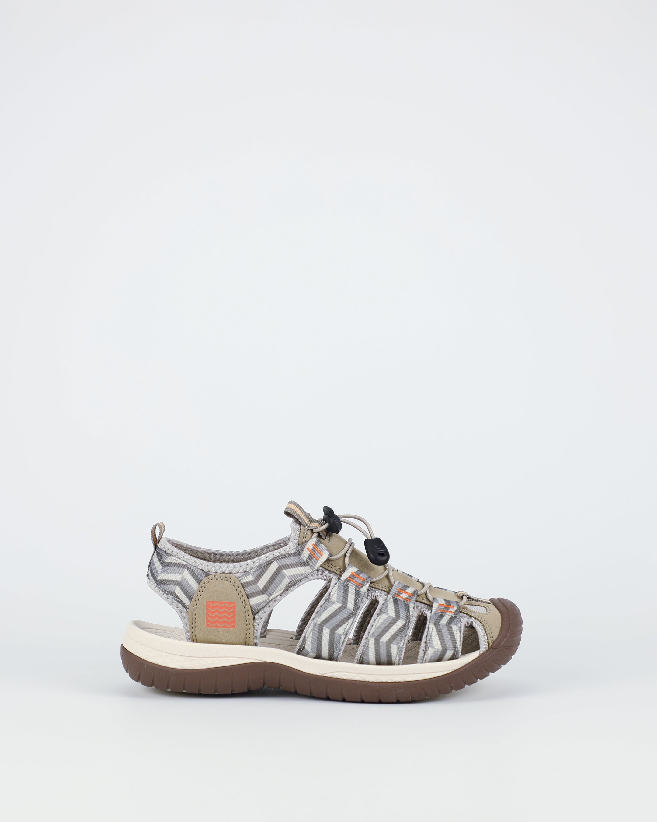 Adventure-ready and built for all-day comfort, the Nomad sandal is designed to keep up with every step of your journey. Crafted with a soft textile upper in a neutral taupe finish, it features breathable cut-out detailing that keeps feet cool and supported all day long.