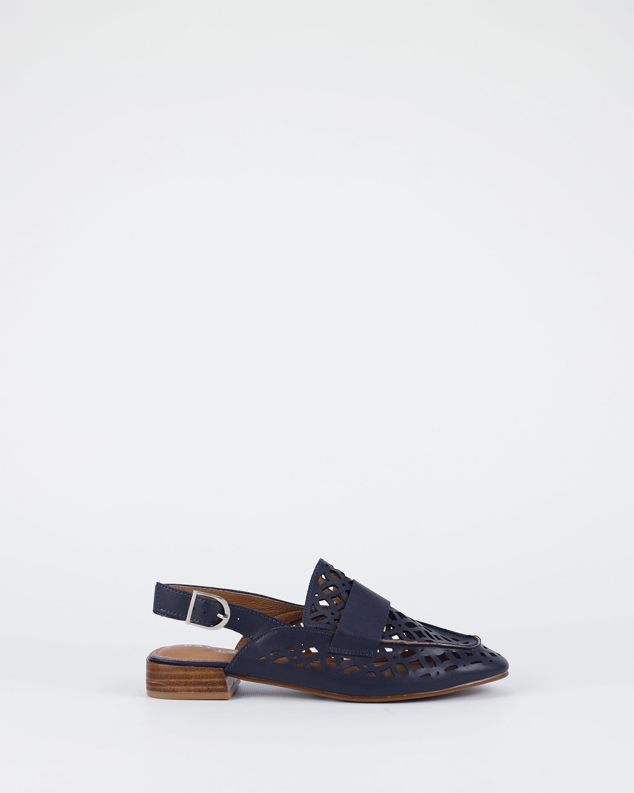 Bring fresh elegance to your wardrobe with Prima in navy. Featuring intricate laser-cut detailing and a classic loafer-inspired profile, it balances statement design with everyday versatility. The adjustable slingback strap and cushioned footbed add ease, while the soft blue hue offers a modern alternative to neutrals.