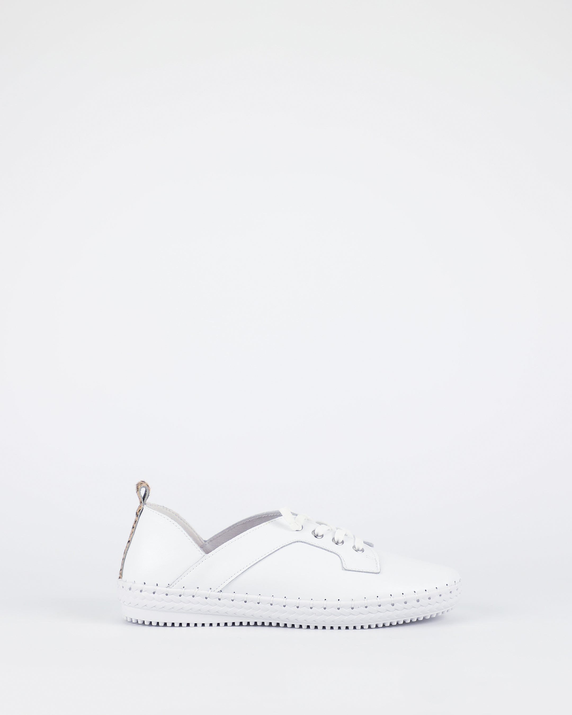 Casual and versatile, the Scali sneakers are crafted from soft white leather with a hint of animal print for a clean, timeless look. Designed with a cushioned footbed and flexible lightweight sole, they provide all-day comfort while the subtle stitched detailing adds a touch of relaxed style.