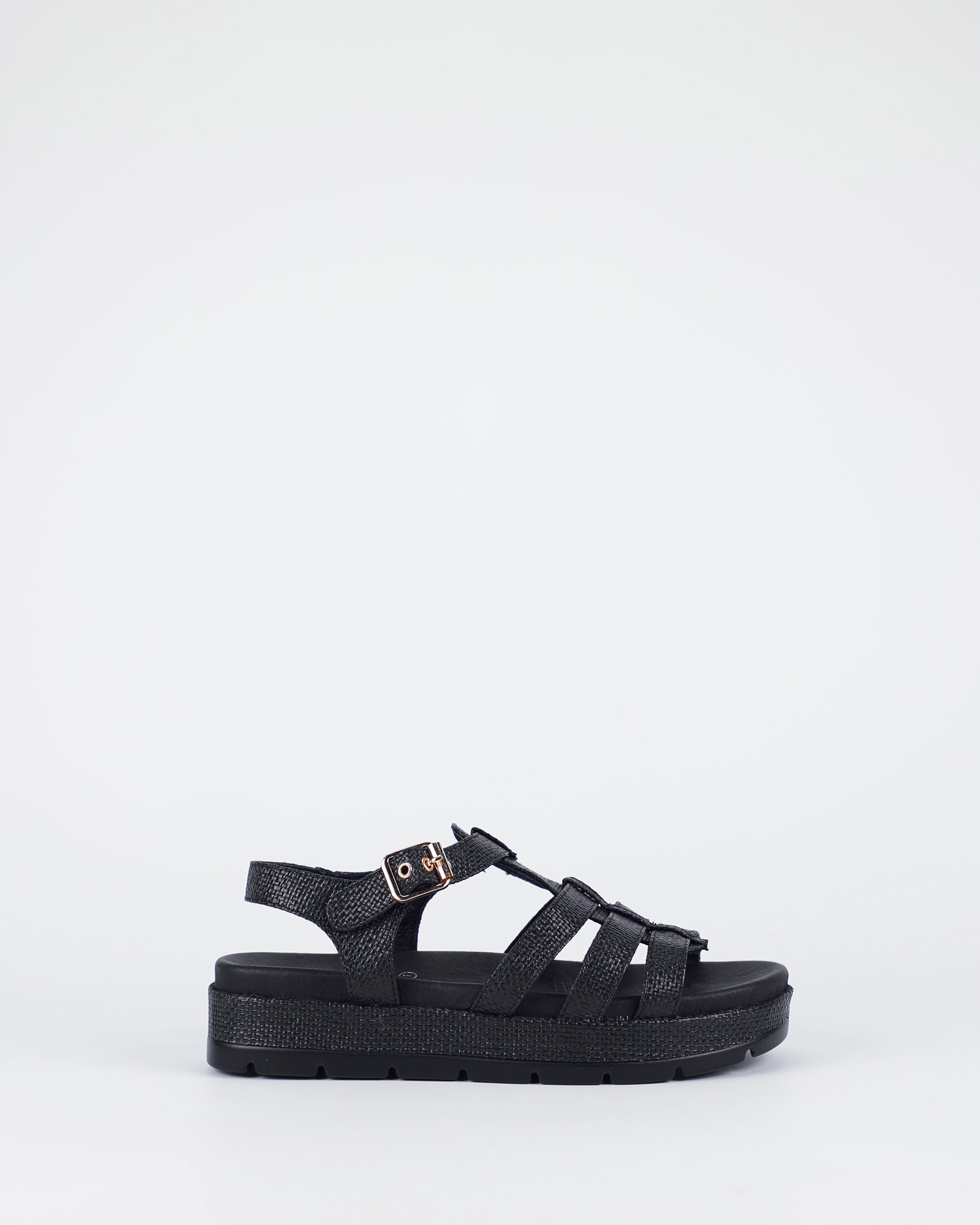 Add a fresh edge to summer styling with Stevie in black raffia. Featuring woven multi-straps, a secure buckle fastening and a textured flatform sole, it combines seasonal materials with a modern silhouette. Lightweight comfort and statement design make it a sandal you’ll wear on repeat.
