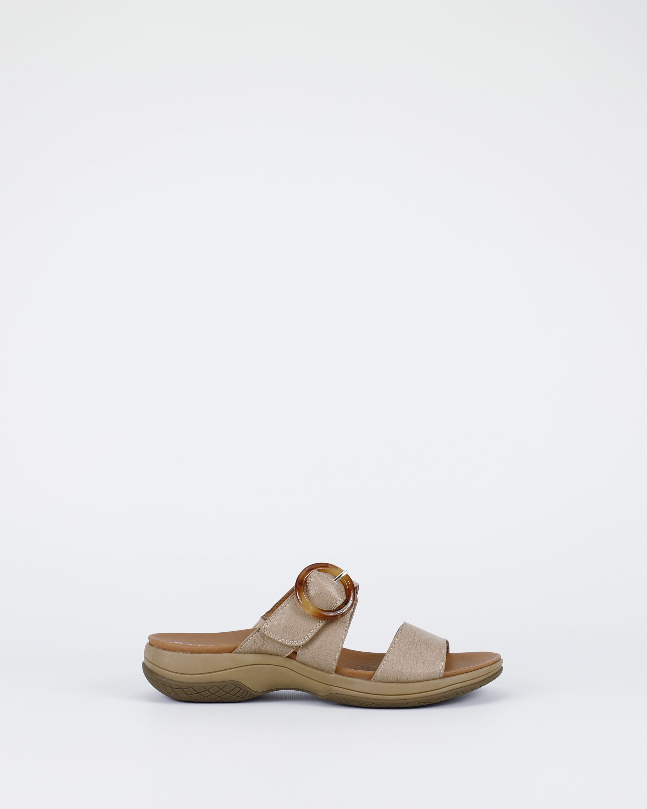 Step out with confidence in Tacoma in latte. The simple neutral-toned straps and round buckle add statement flair, while the cushioned footbed and lightweight sole deliver lasting comfort. Designed for easy wear, it’s a slip-on sandal that balances standout style with everyday ease.