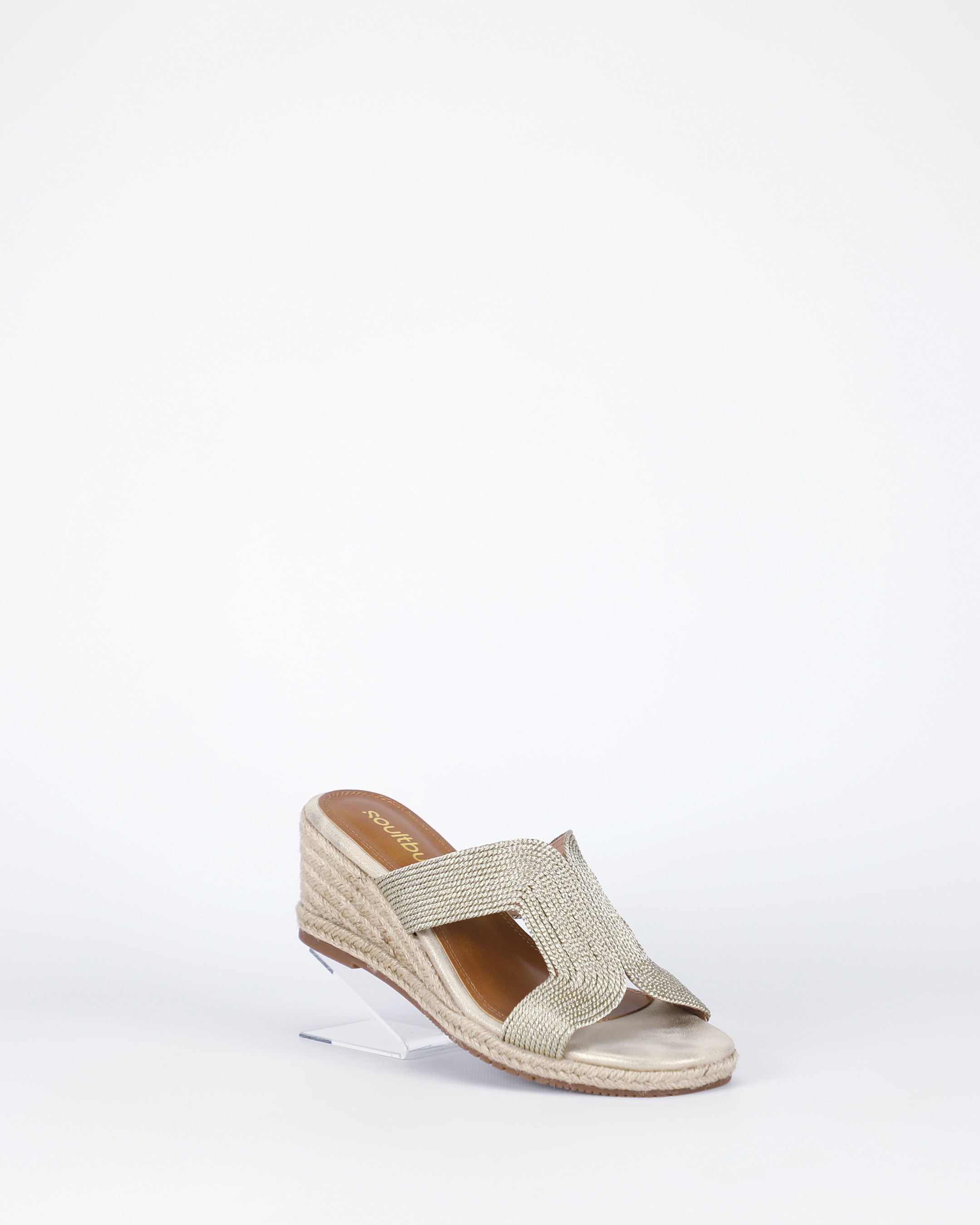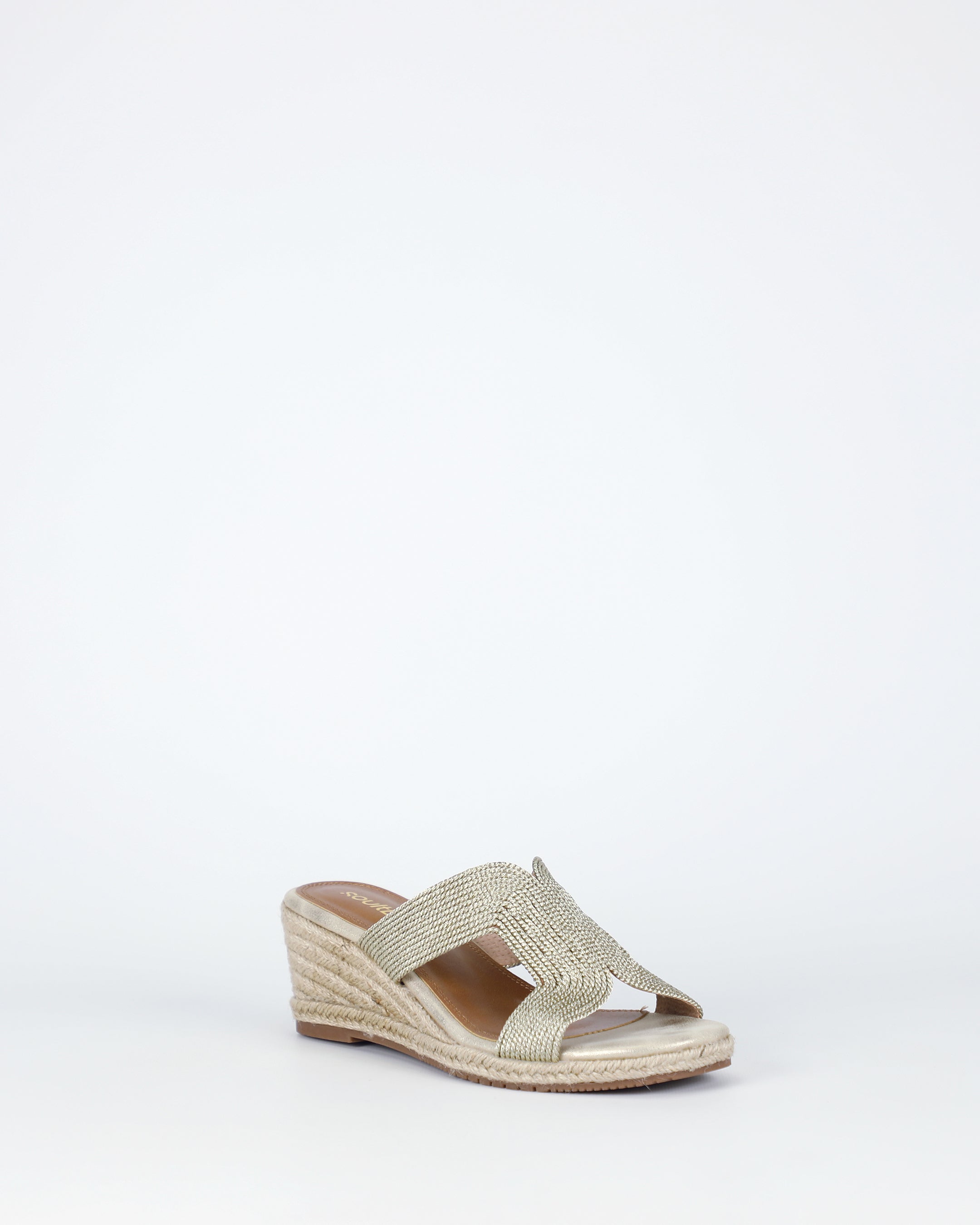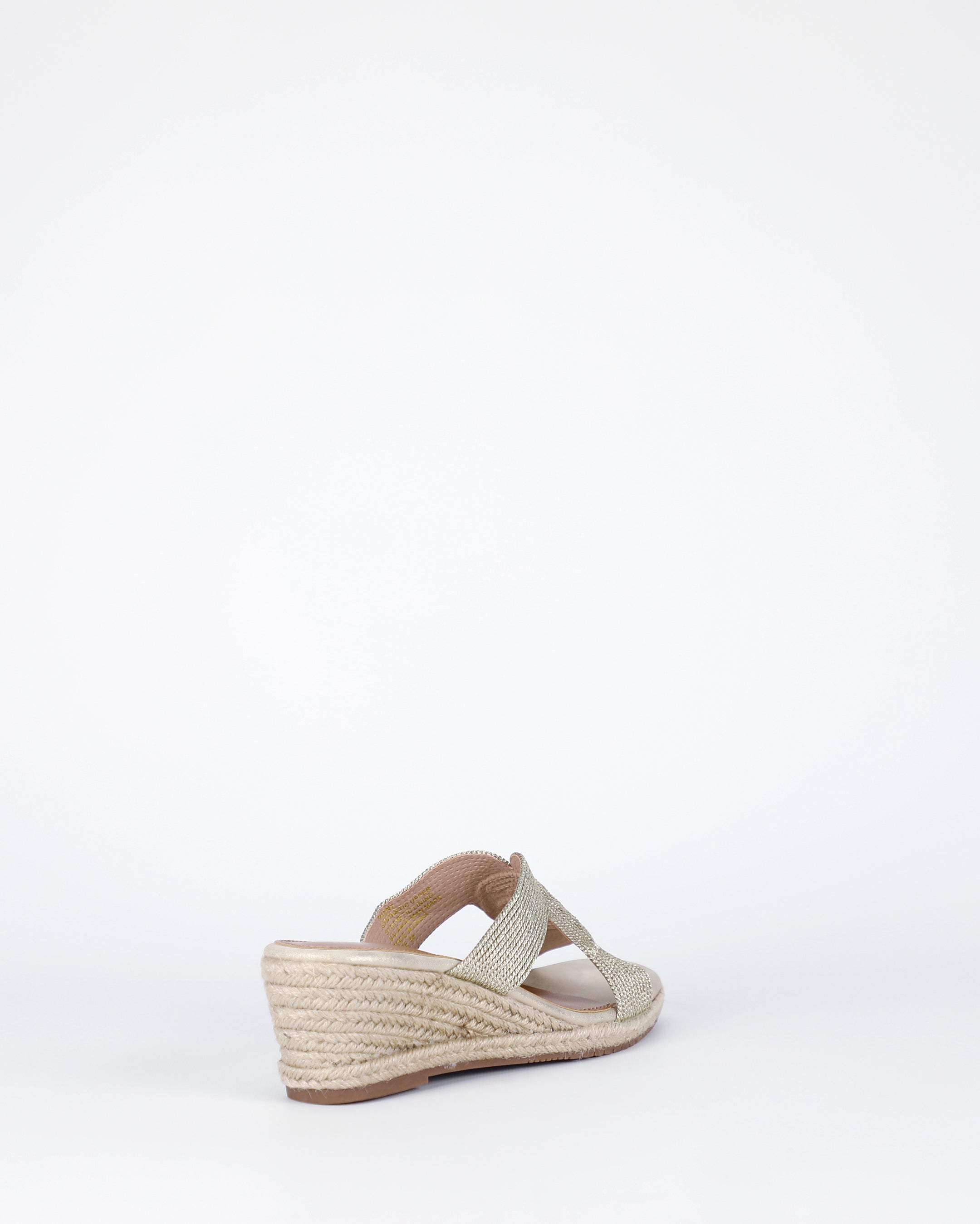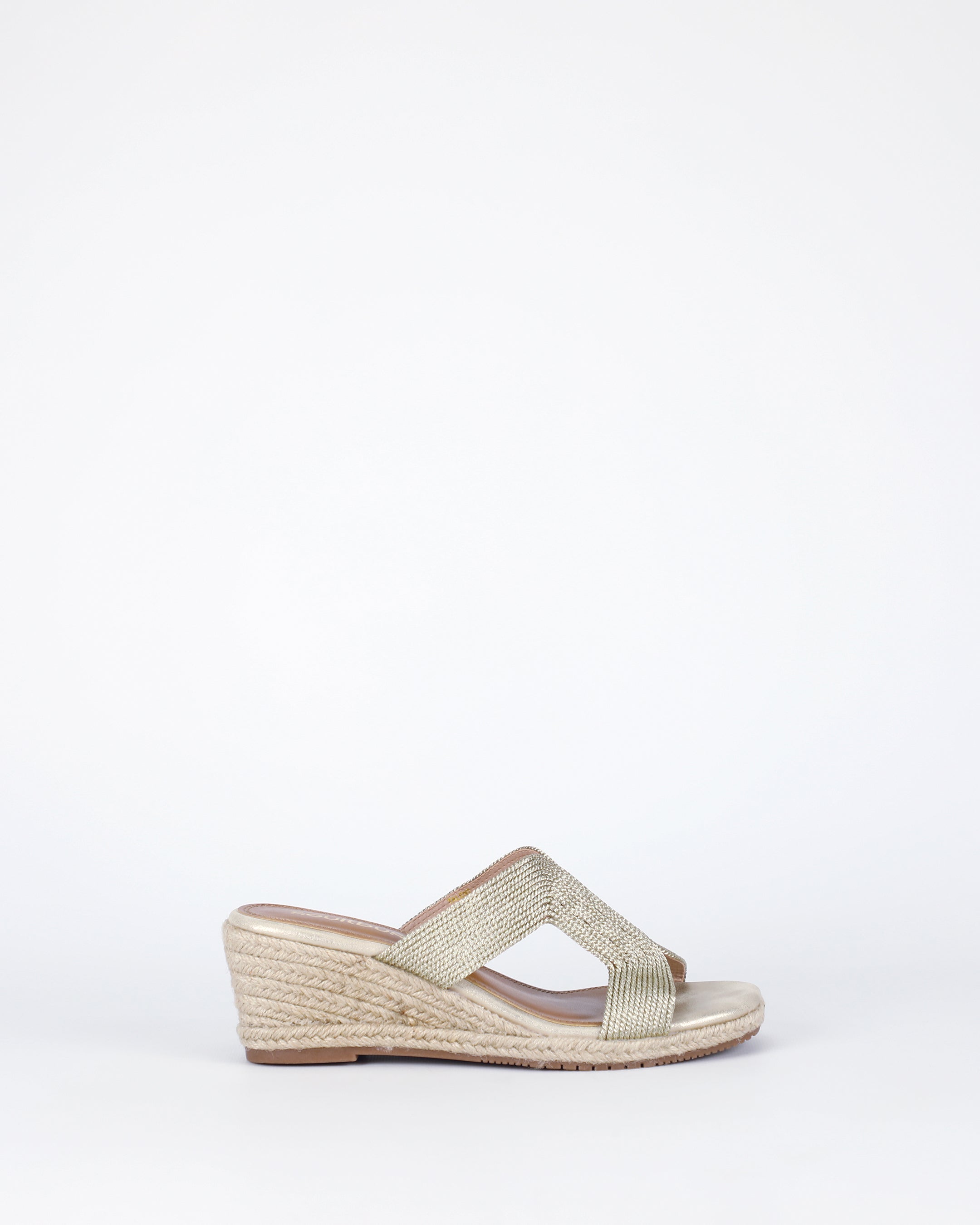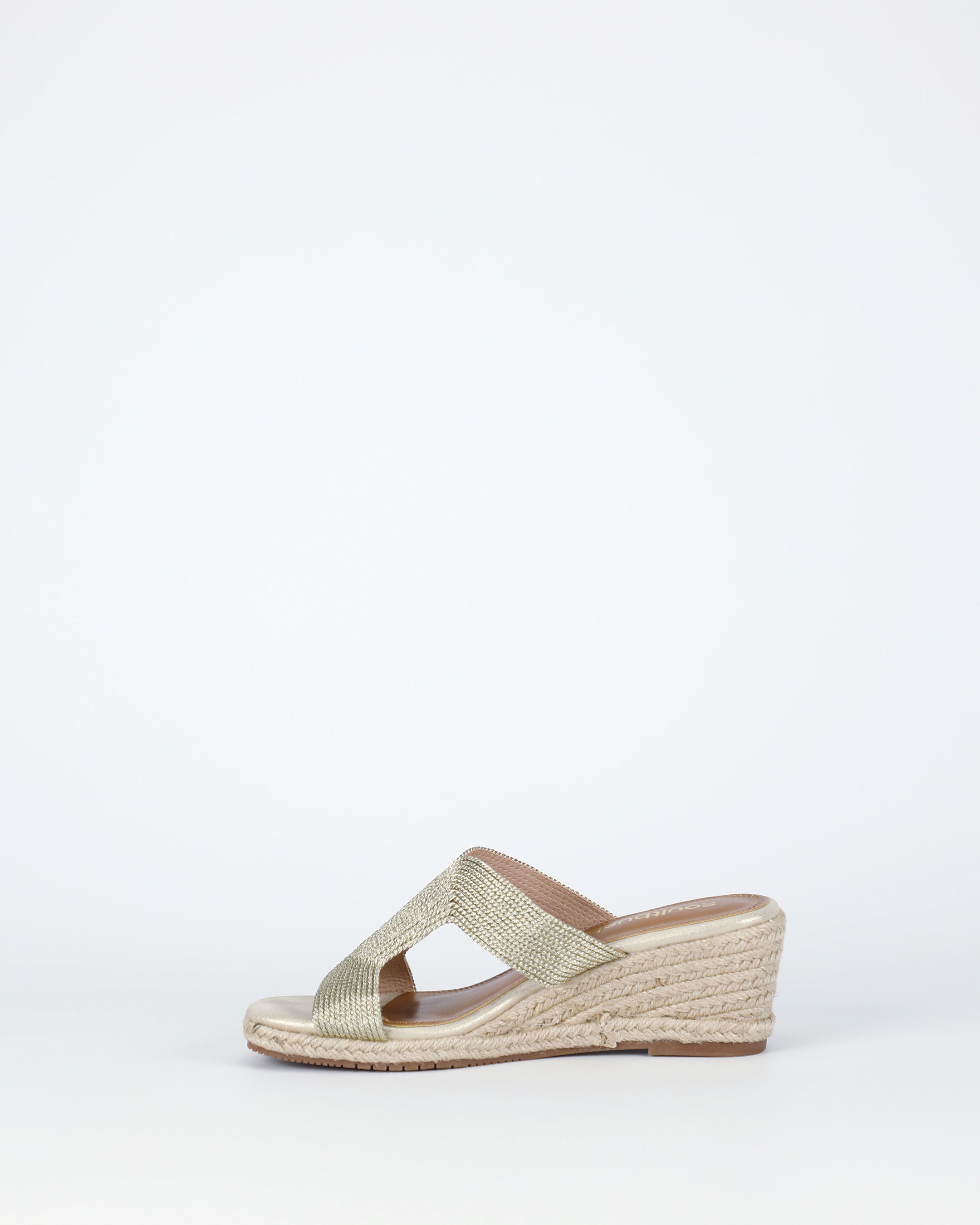 Bring a touch of shimmer and sophistication to your look with the Talent wedges in light gold. Designed for comfort and style, they feature soft woven straps, a cushioned footbed, and an elegant jute-wrapped wedge for effortless height and all-day wear.