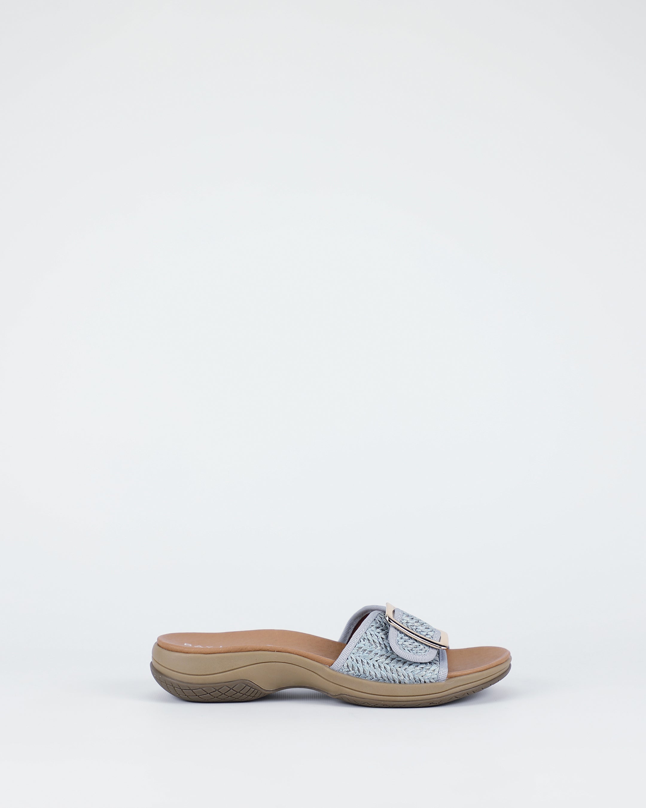 Step into easy sophistication with Troppo in denim raffia. The wide raffia-textured strap and oversized buckle add statement detail, while the cushioned footbed and lightweight sole ensure comfort for all-day wear. Simple yet refined, it’s a sandal designed for effortless summer dressing.