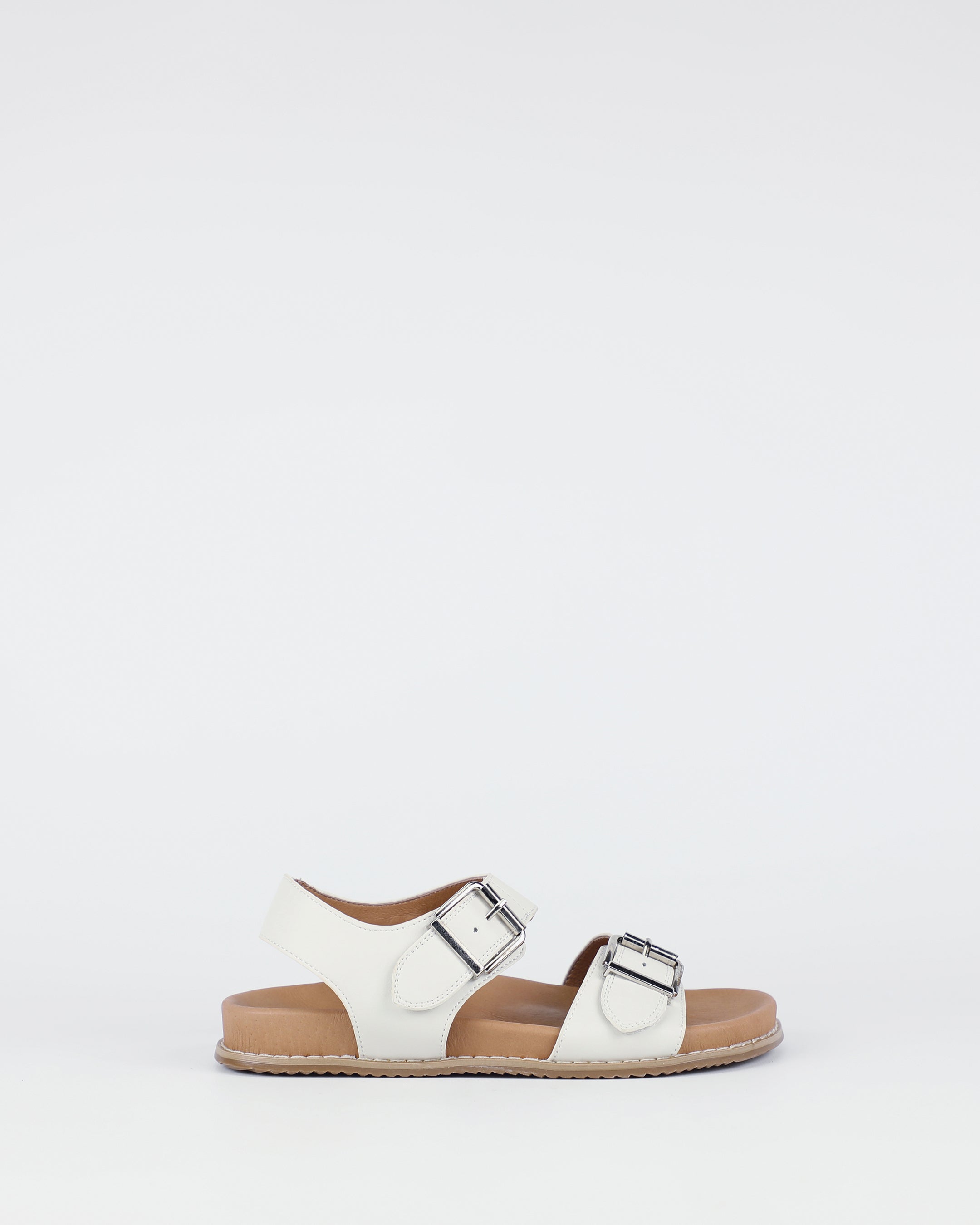Step into casual cool with Zeus in ice. Crafted from smooth leather in a soft beige finish, this sandal features bold double buckle straps and a cushioned footbed. The lightweight sole ensures comfort, making it the perfect blend of everyday ease and on-trend design.