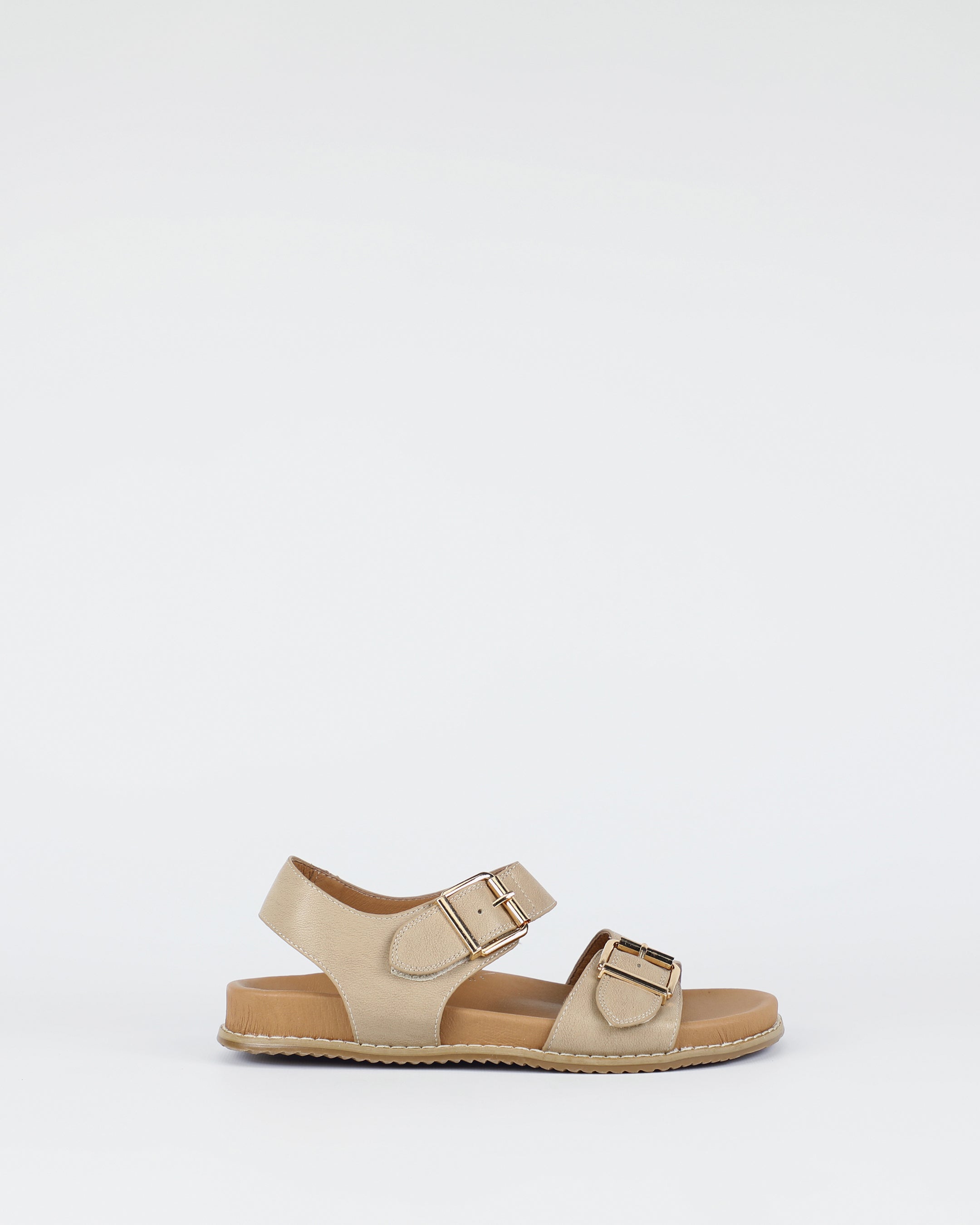 Step into casual cool with Zeus in latte. Crafted from smooth leather in a soft latte finish, this sandal features bold double buckle straps and a cushioned footbed. The lightweight sole ensures comfort, making it the perfect blend of everyday ease and on-trend design.