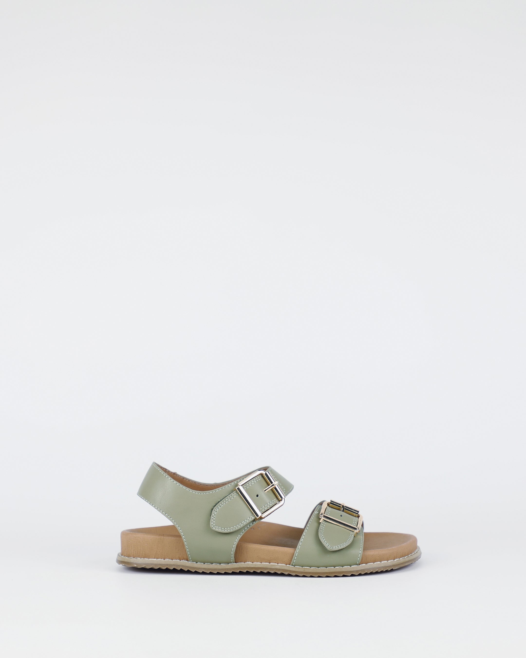 Step into casual cool with Zeus in sage. Crafted from smooth leather in a versatile green finish, this sandal features bold double buckle straps and a cushioned footbed. The lightweight sole ensures comfort, making it the perfect blend of everyday ease and on-trend design.