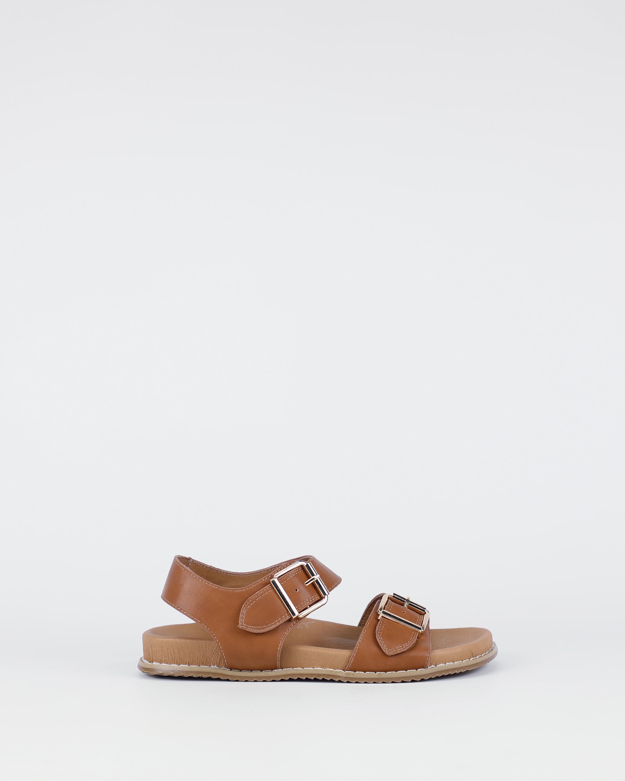 Step into casual cool with Zeus in tan. Crafted from smooth leather in a versatile tan finish, this sandal features bold double buckle straps and a cushioned footbed. The lightweight sole ensures comfort, making it the perfect blend of everyday ease and on-trend design.