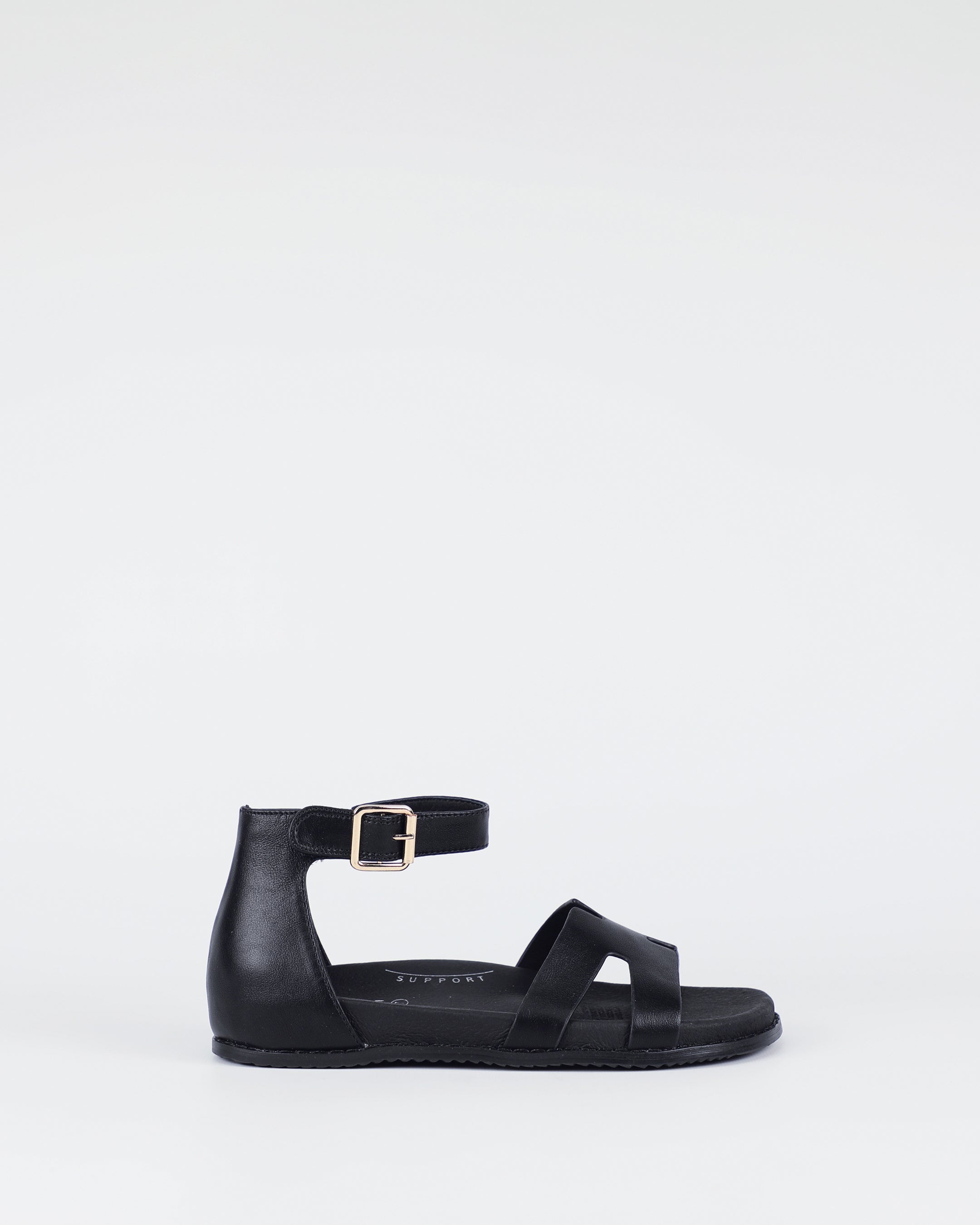Bring subtle sophistication to everyday style with Ziggy in black. The black leather finish and clean strap design create a modern sandal that feels both versatile and effortless. A cushioned footbed and lightweight sole ensure comfort that lasts from day to night.