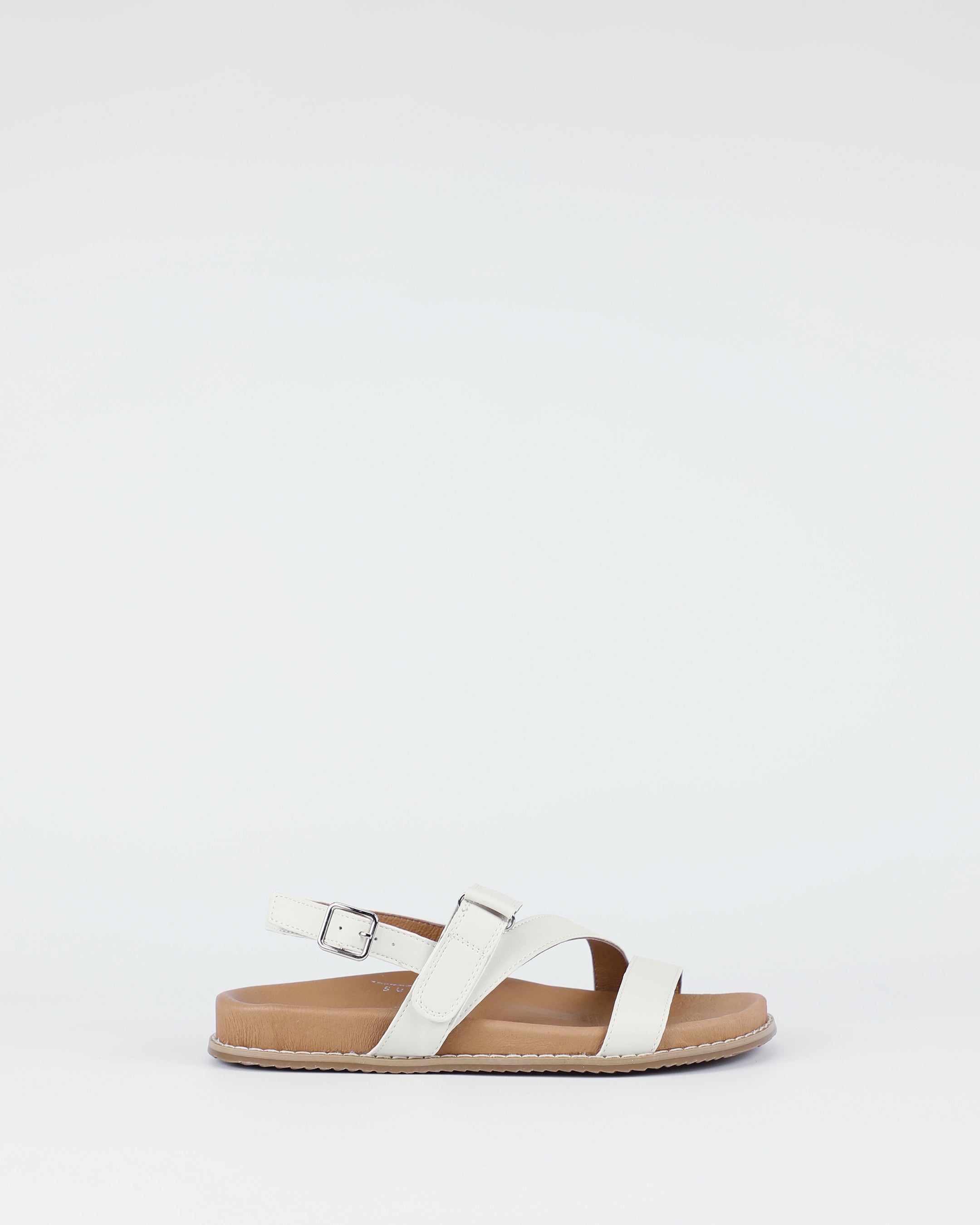 Bring understated style to your wardrobe with Zorba in ice. Crafted with smooth leather-look straps in a clean, criss-cross design, this sandal offers modern simplicity with everyday comfort. A cushioned footbed and lightweight sole make it a reliable choice for long summer days.