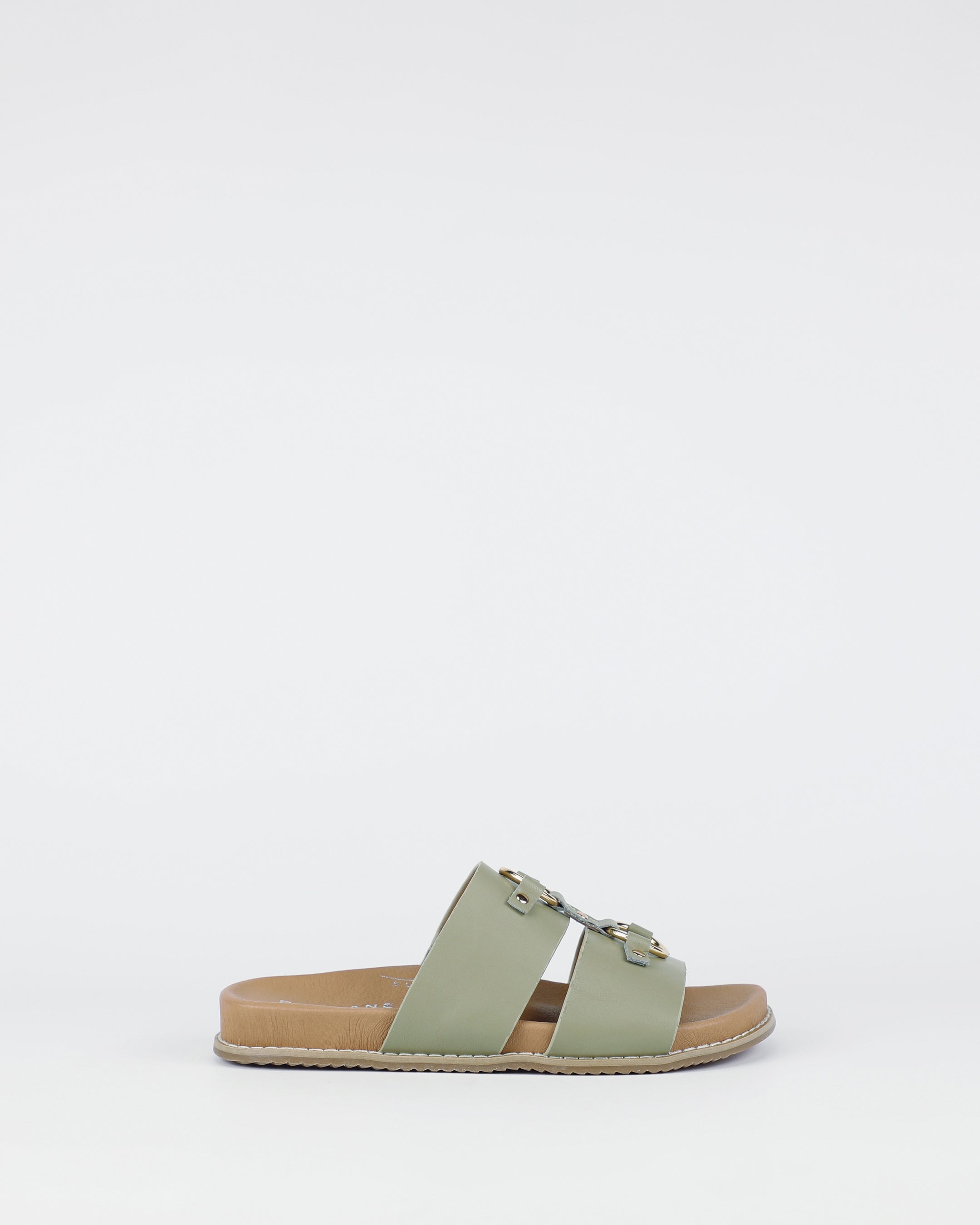 Step into modern ease with Zuma in sage. Featuring wide double straps with polished gold hardware, this sandal delivers a sleek look with everyday versatility. The cushioned footbed and lightweight sole ensure comfort, making it a staple for warm-weather dressing.
